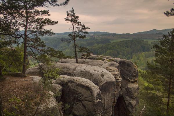 Ze skalní stěny jsou krásné rozhledy na severní a jihovýchodní část Českého ráje.